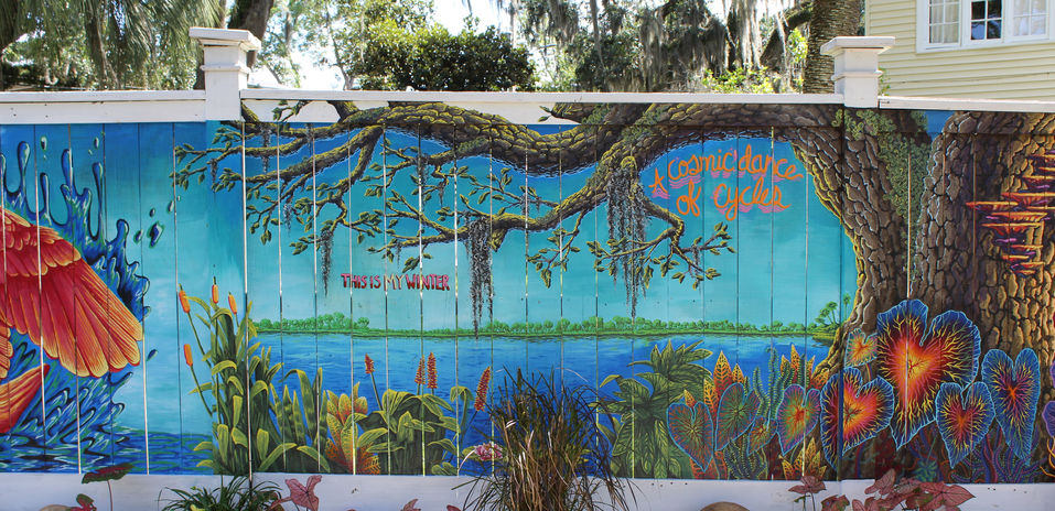 A 140 ft mural in Jacksonville Florida, painted May 2020. Crowdfunded community art project exploring inspirational themes of perseverance, strength, and embracing the unknown. Featured in several local magazines and newspapers. Augmented reality elements. Used as a stop in the 2nd FIGMENTJax community-in-quarantine treasure hunt project.